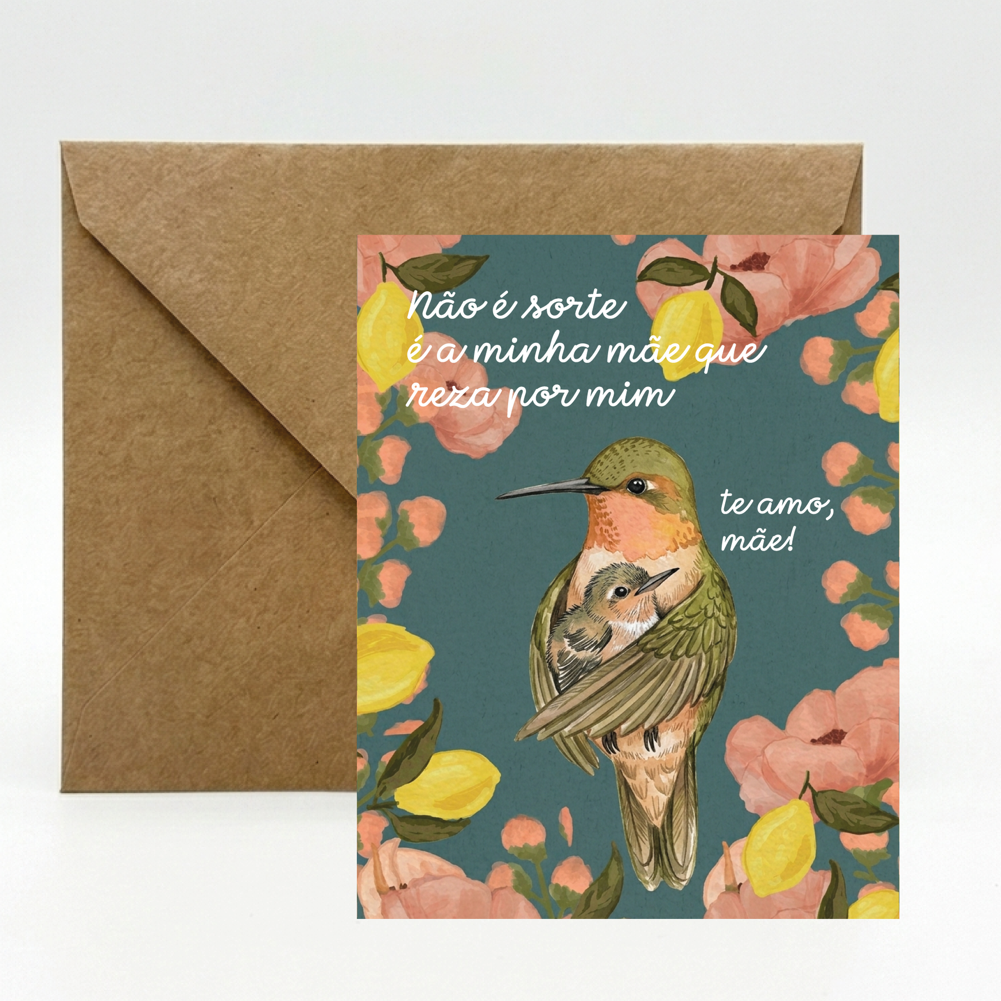 Nosso cartão especial vem acompanhado de um envelope em papel kraft, trazendo um toque rústico, elegante e cheio de afeto. Perfeito para escrever à mão aquele recadinho que vem direto do coração – simples, sincero e cheio de amor.