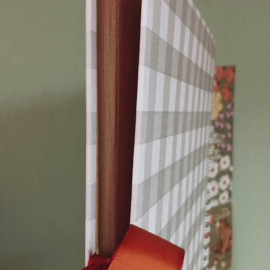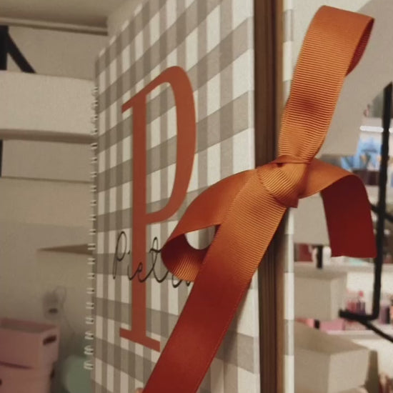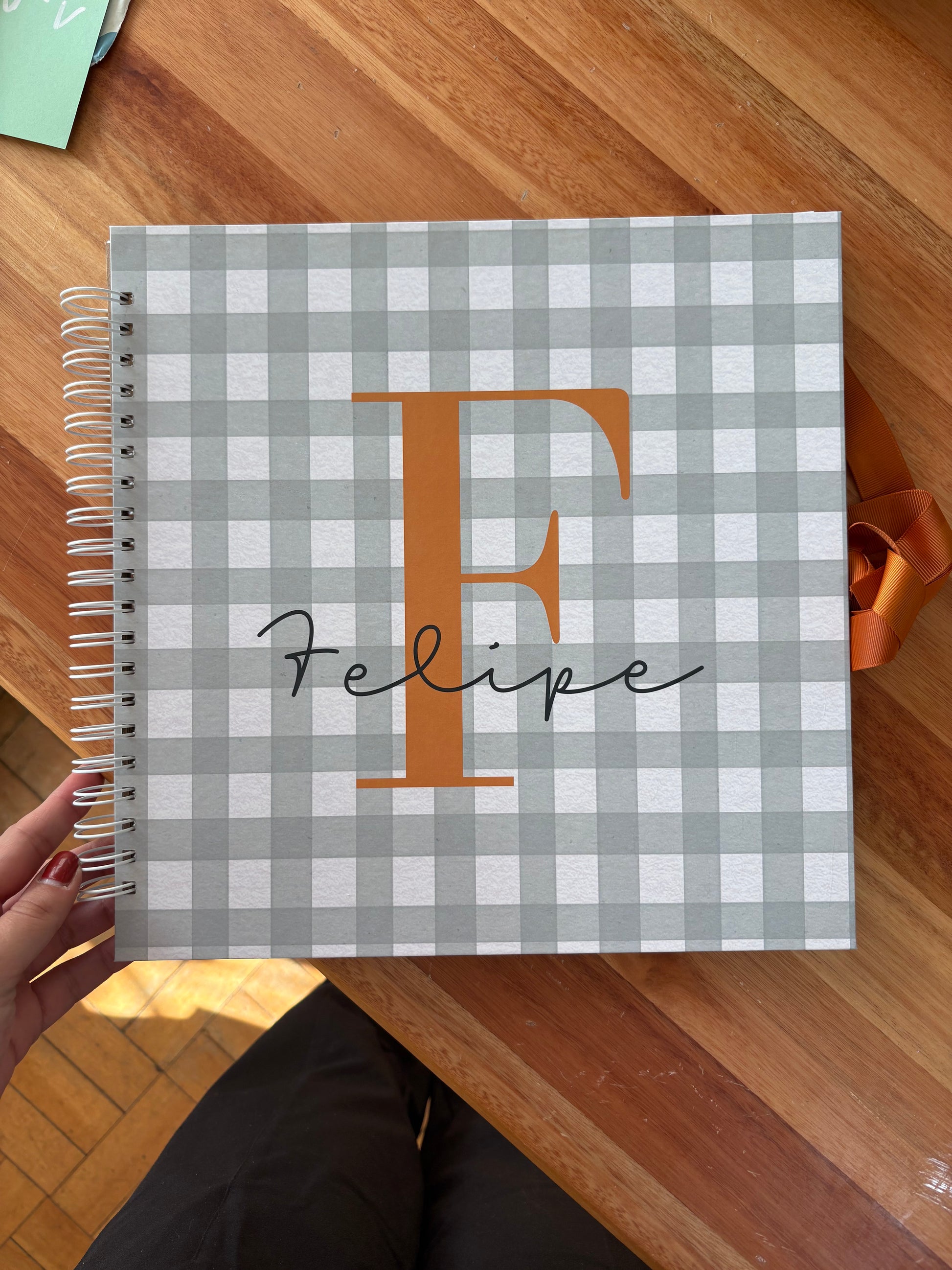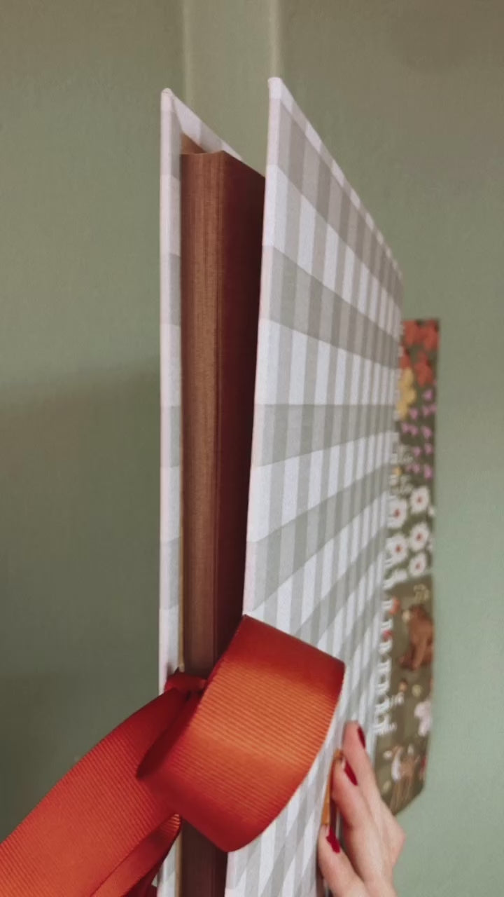 Acabamento com fita colorida para fechar o álbum com laço